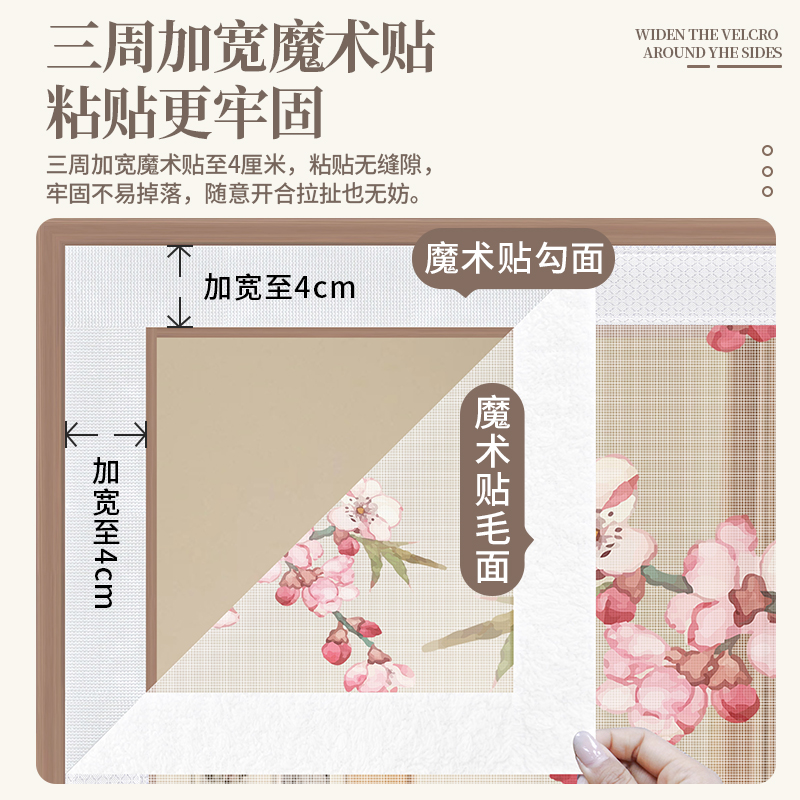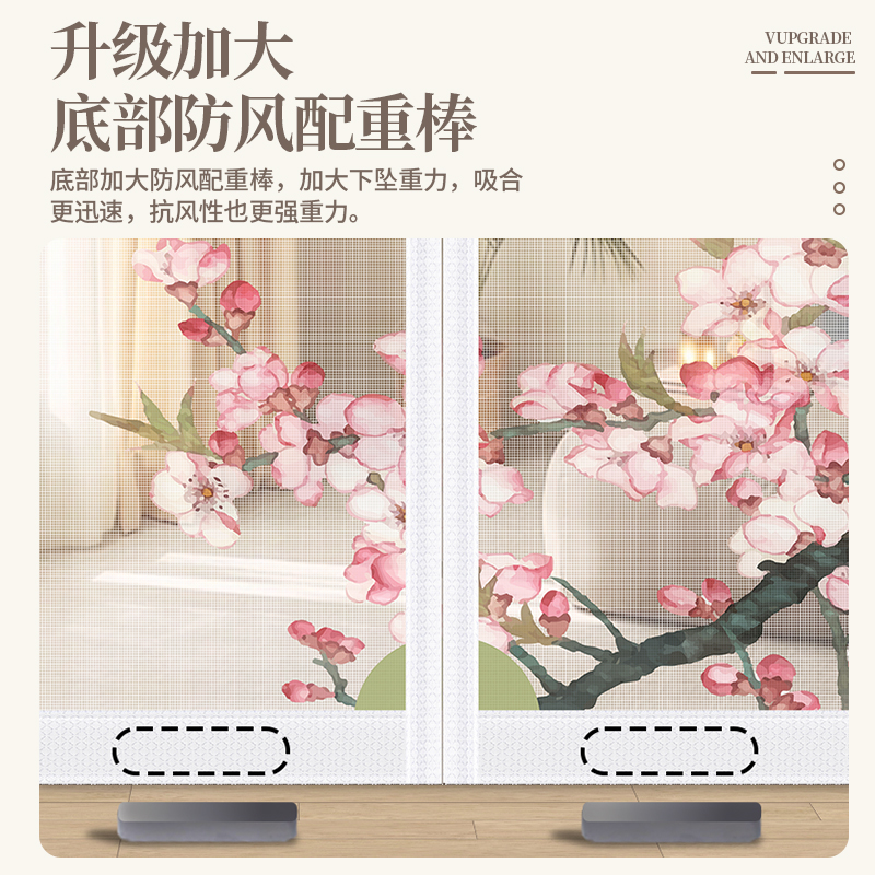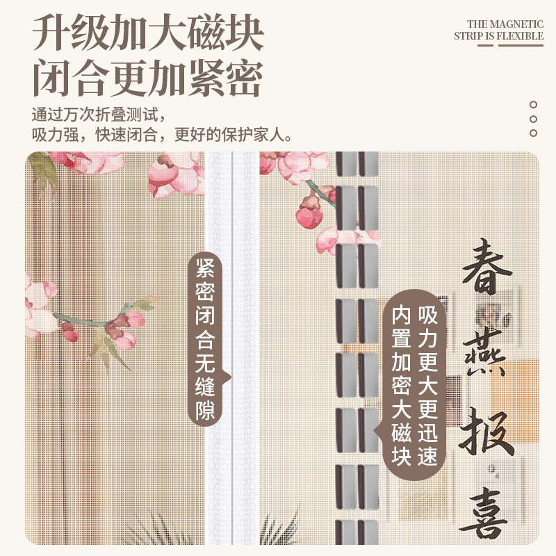 中式典雅夏季防蚊门帘加密纱网中国风印花门帘家用自吸磁铁免打孔