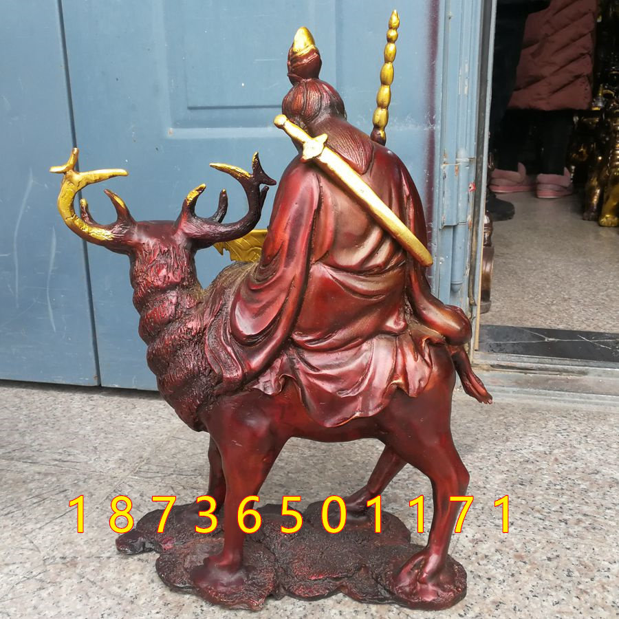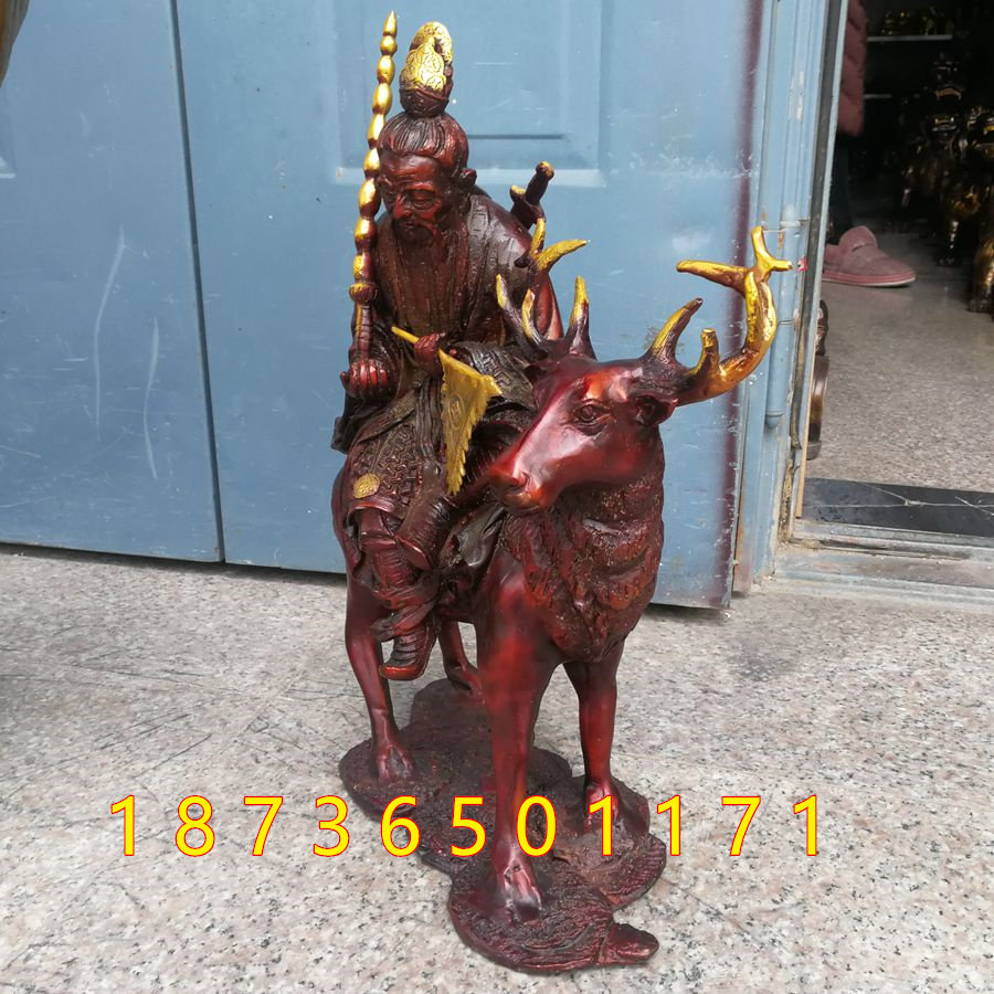 纯铜姜太公骑四不像拿打神鞭封神榜姜子牙骑麋鹿家居桌面招财摆件