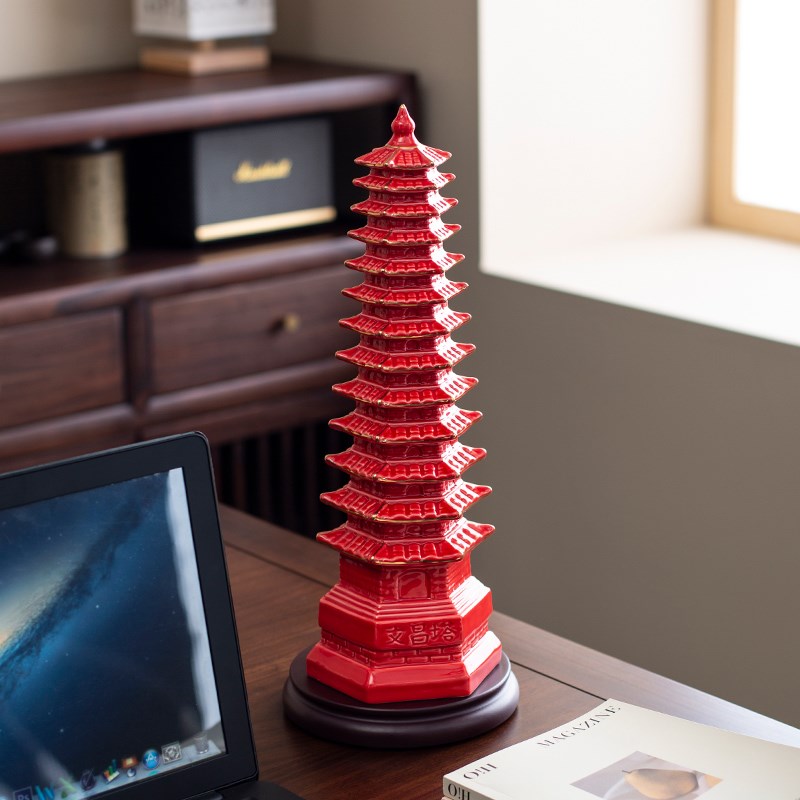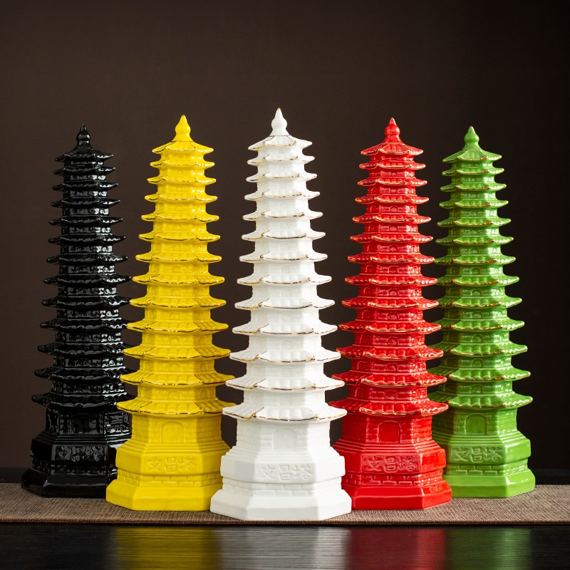 大号陶瓷文昌塔摆件十三13层客厅书房办公室桌学生红黄黑绿色宝塔