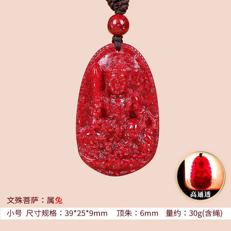 兔年朱砂本命佛h吊坠女原矿十二生肖八大守护神高透晶体颗粒挂件