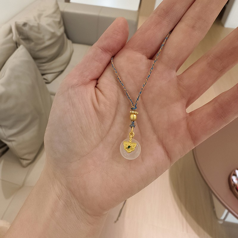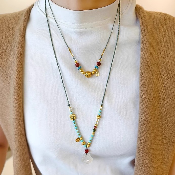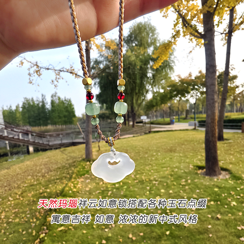 新中式天然玛瑙玉髓祥云锁项链女小众复古编织绳毛衣链轻奢锁骨链
