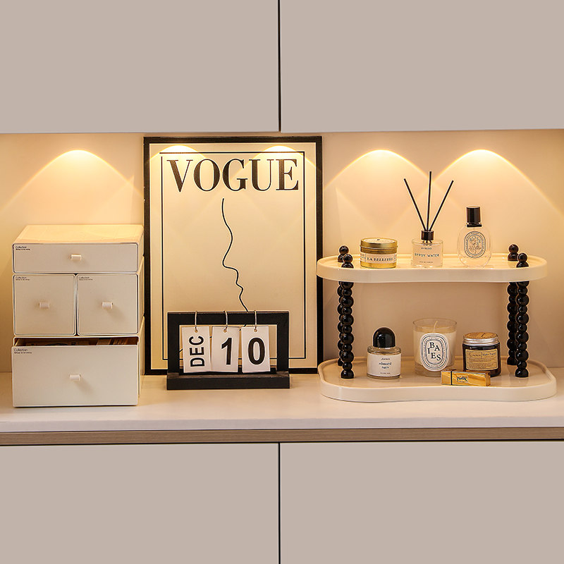 奶油风入户门玄关钥匙收纳摆件鞋柜置物架客厅桌面托盘家居装饰品