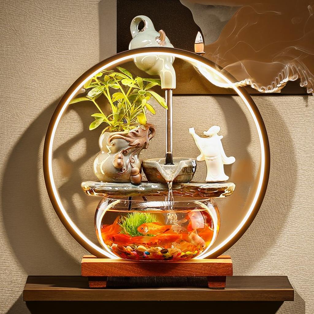 创意金鱼缸客厅桌面循环流水摆件小型家用迷你悬壶招财玻璃鱼缸