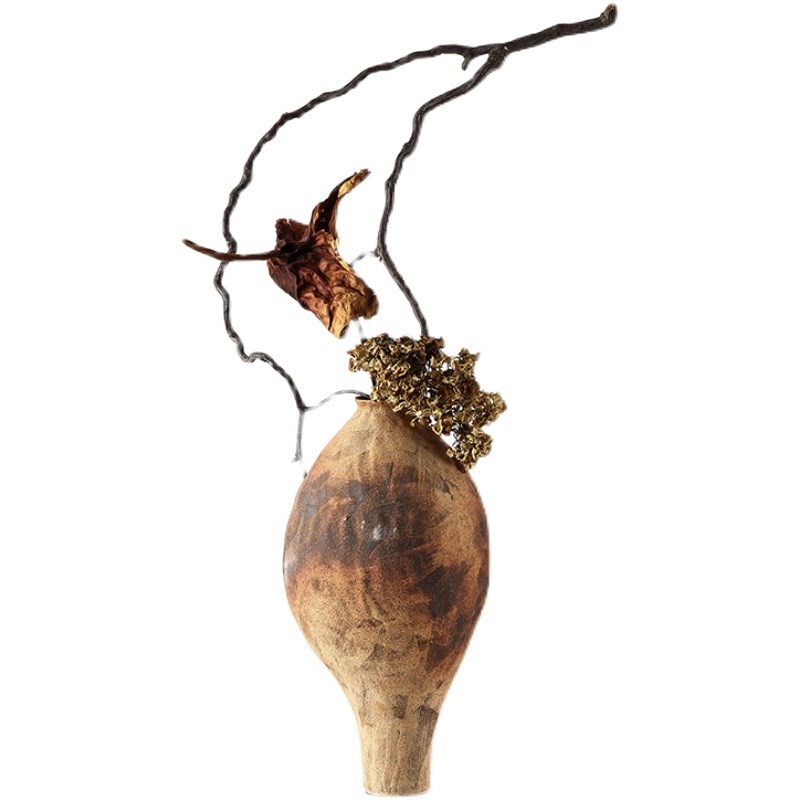 冯哲元日式茶空间侘寂风陶瓷花瓶摆件客厅居家摆放枯枝花艺装饰品