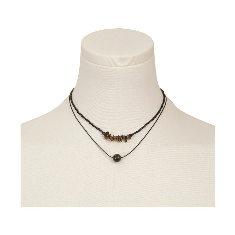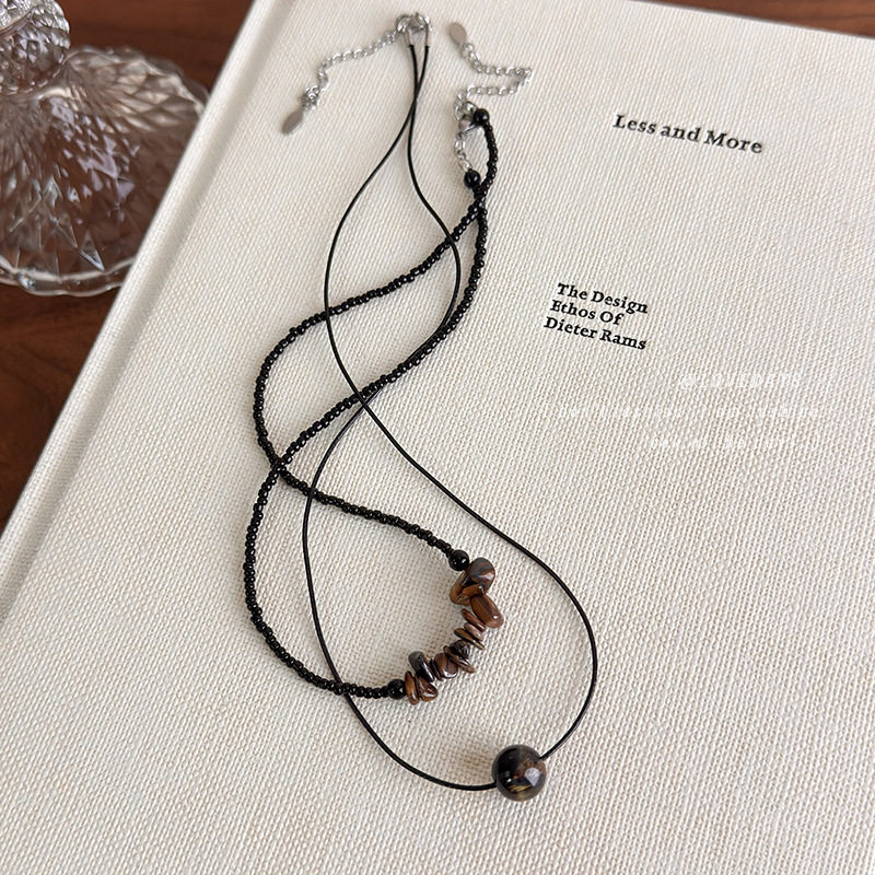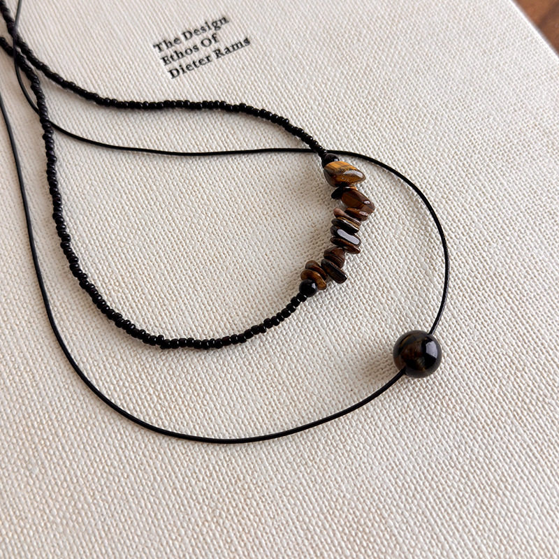 新中式黑色虎眼石串珠项链甜酷辣妹个性复古木纹不规则珠子锁骨链