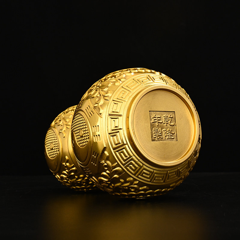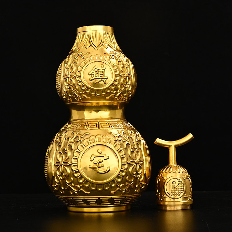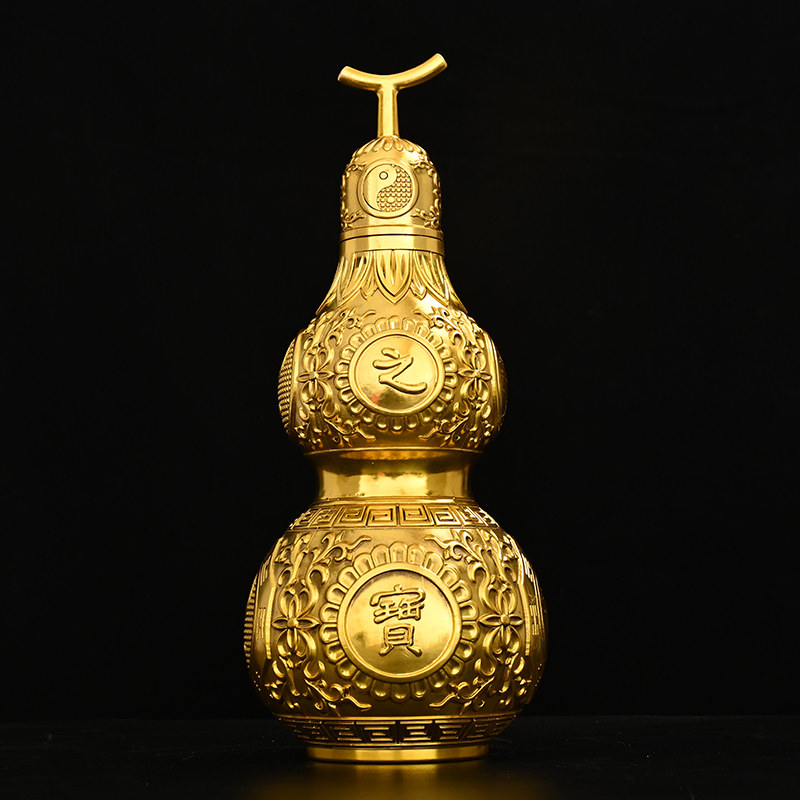 开口纯铜葫芦五帝钱葫芦纯铜镇家居摆件吉祥大号葫芦送礼客厅摆设