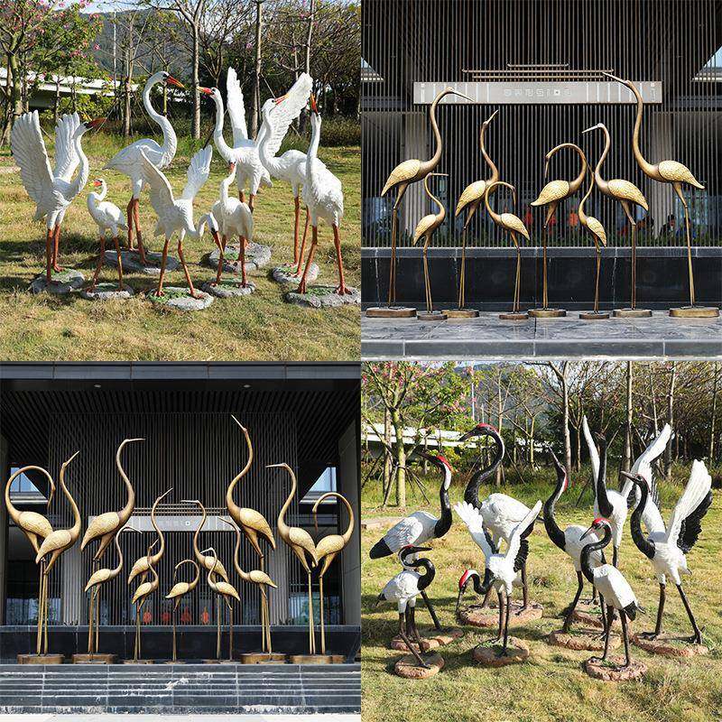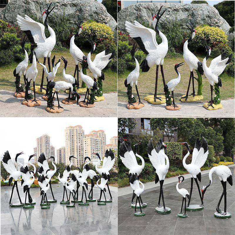 UIV仙鹤摆件外玻璃钢白鹭鸟类雕塑园林庭院小区户水池景仿观真装