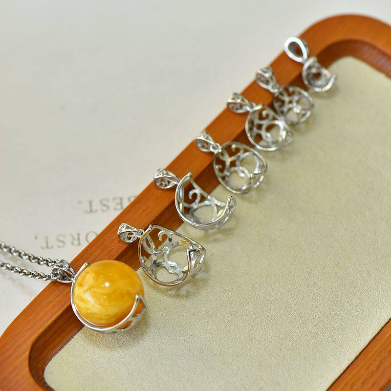 S925纯银吊坠空托圆珠球笼免打孔免沾胶10-28mmDIY镶嵌珍珠玉石托