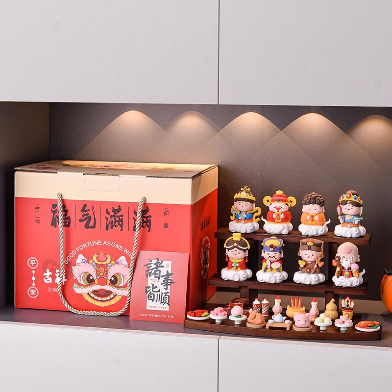 五路财神爷各路神仙桌面入户玄关装饰摆件家用全套展示架开业礼品