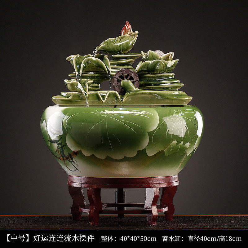 荷叶缸循环流水荷花摆件生财陶瓷客厅喷泉加湿鱼缸养鱼开业礼品