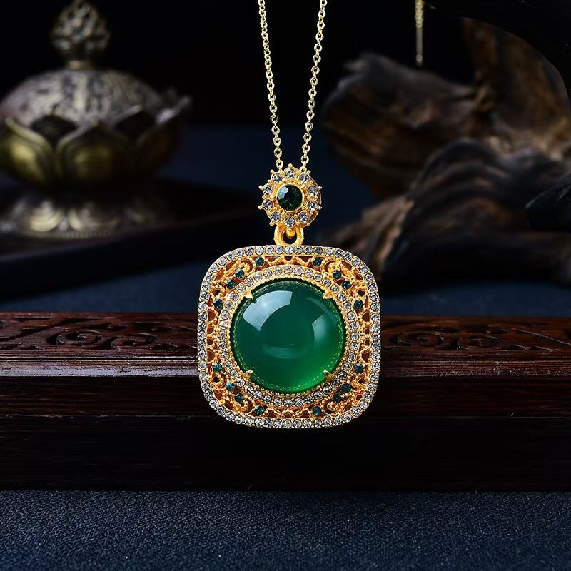 铜合金吊坠 新款满钻镶嵌蛋面红色时尚国风气质单吊坠