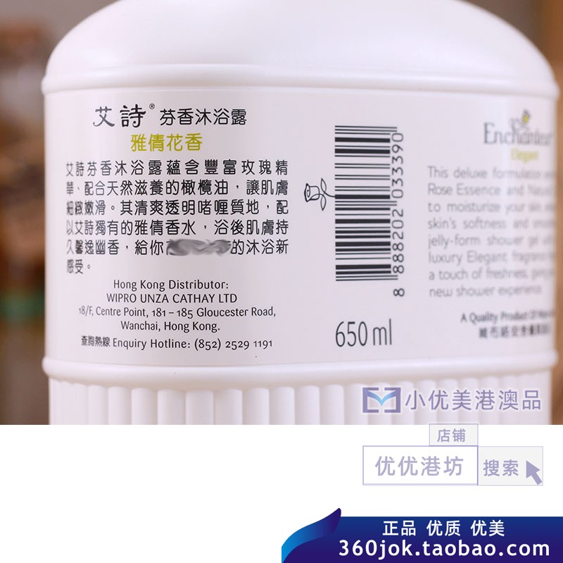 Enchanteur艾诗芳香雅倩花香沐浴露650ml去味香体留香港澳进口