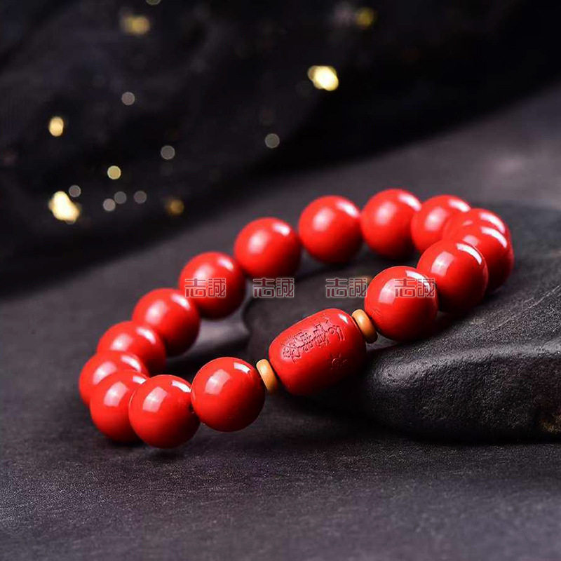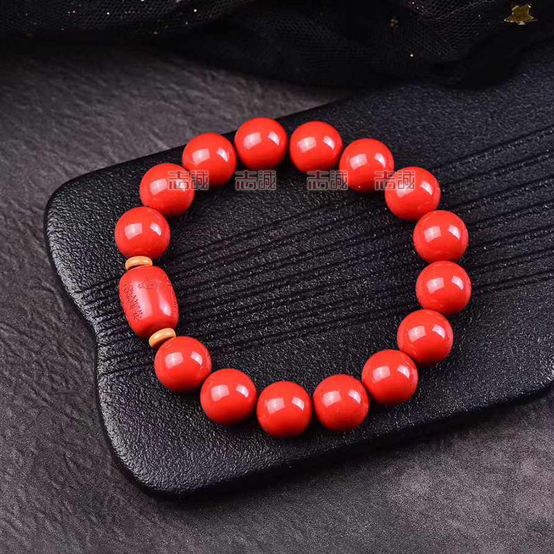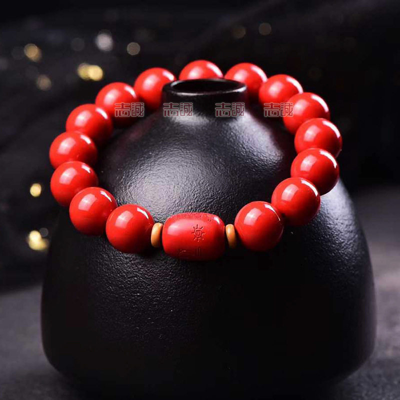天然高含量红砂太S化J桶珠手链男女士款红色辰砂手串朱砂8-12新款