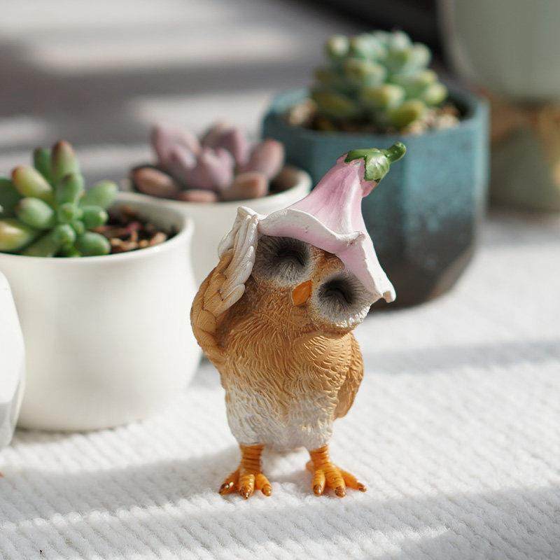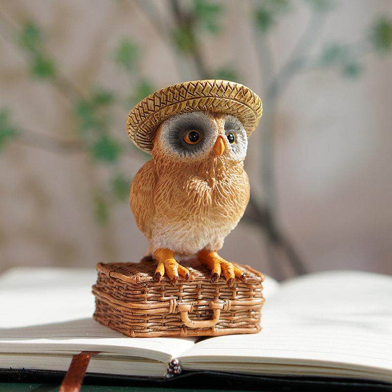 创意旅行猫头鹰花园户外装饰仿真动物桌面摆件可爱树脂工艺品礼物