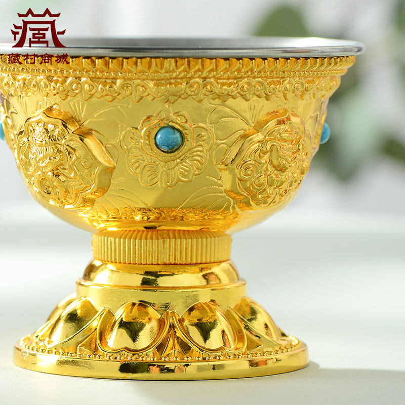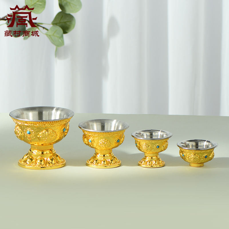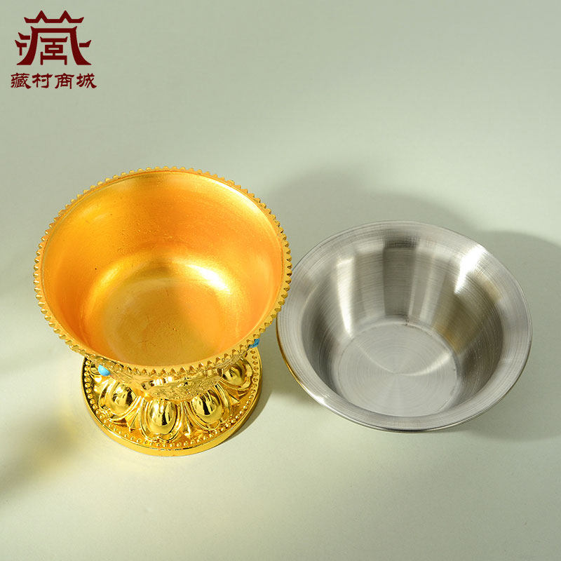 供水杯用品杯八吉祥圣水杯铜鎏金佛前不锈钢内胆家用供水碗