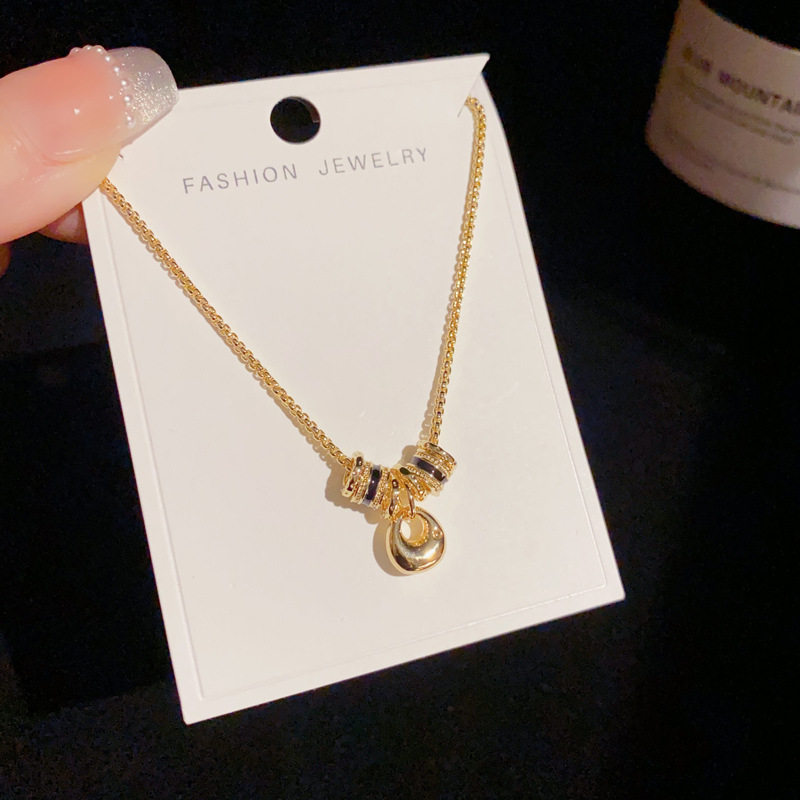 韩版时尚设计感金属圆环小胖福吊坠项链女个性轻奢精致百搭锁骨链