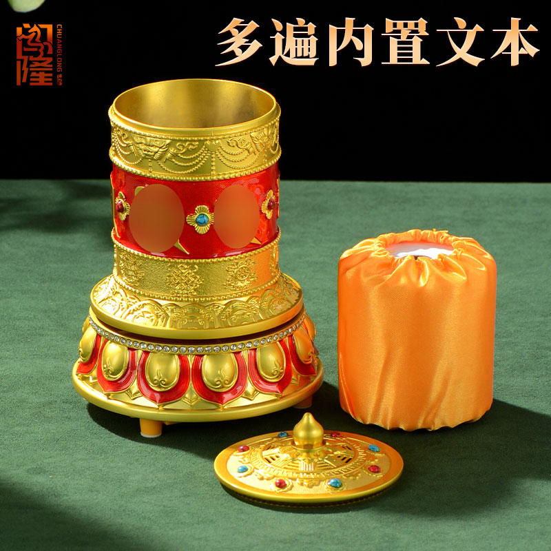 闯隆电动转轮藏族桌面转经简 藏式转动筒 文殊百字财神转金桶摆件