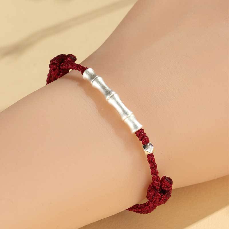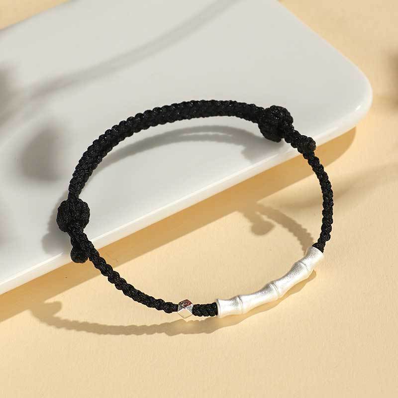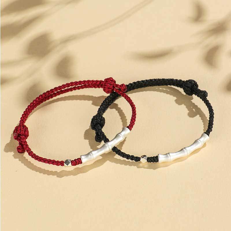新品999银竹节情侣串珠手链新中式手工编制红色手绳黑色手串