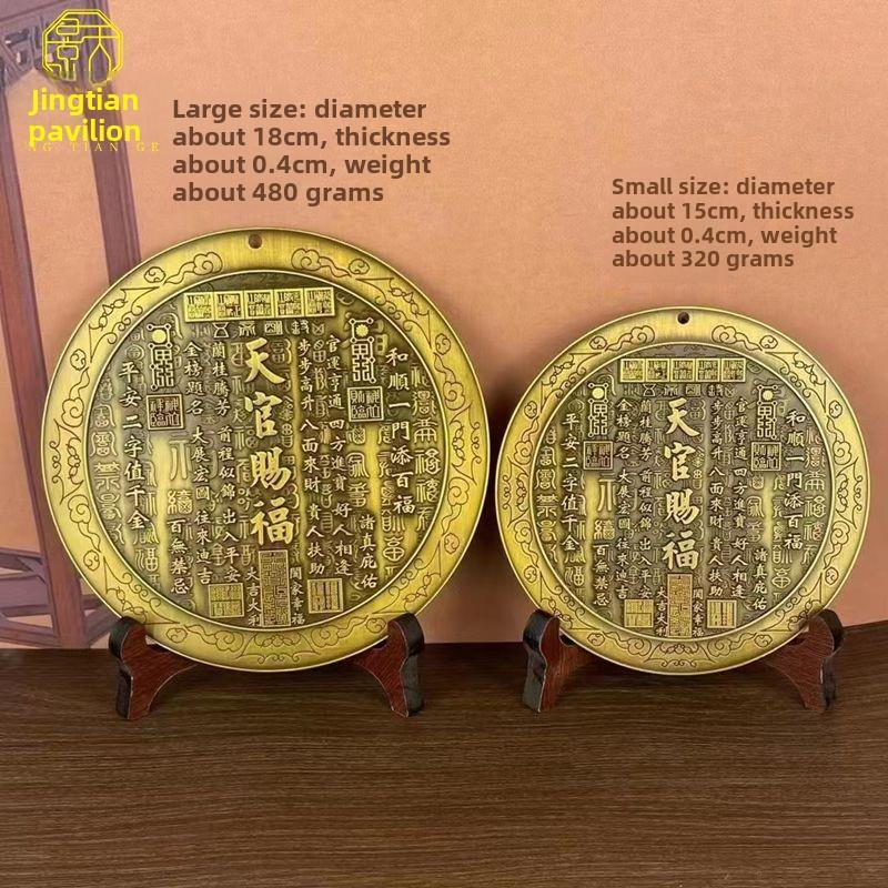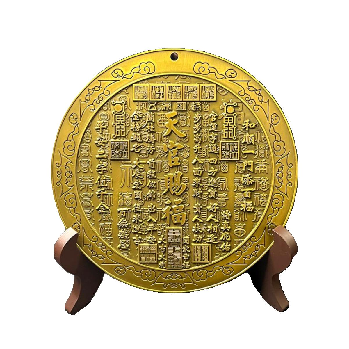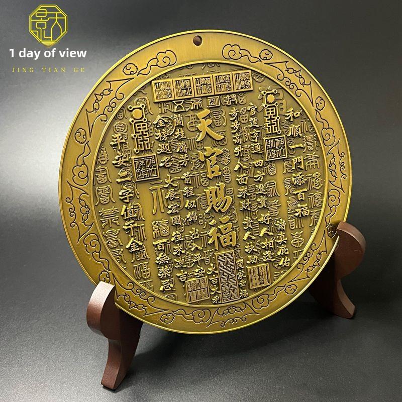 天官赐福浮雕铜镜摆件太极八卦客厅玄关金榜题名吉语挂件装饰收藏