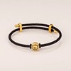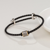 3MM粗纯银路路通转运珠配绳钢丝真皮细款黑色小众可调节银扣手链