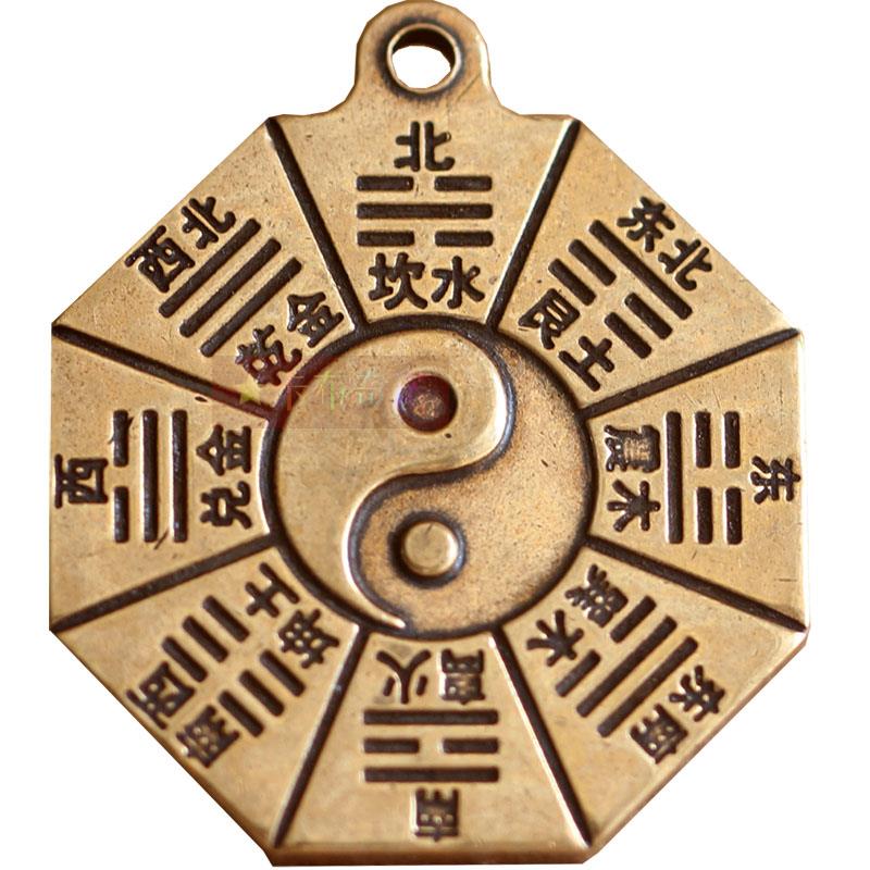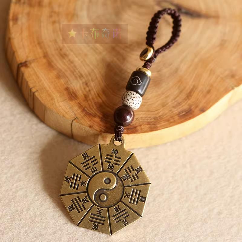 黄铜五行八卦福钥匙扣挂件纯铜八卦牌五行图汽车钥匙链吊坠挂饰品