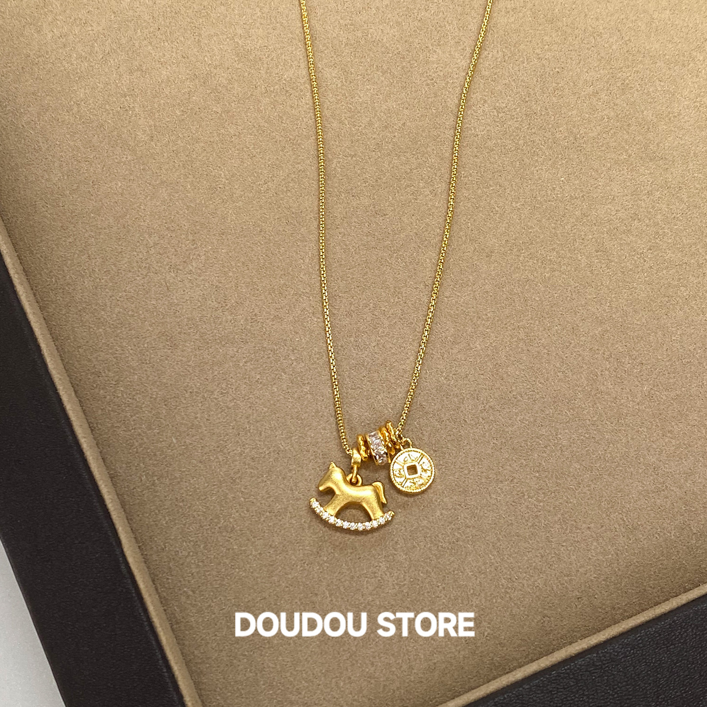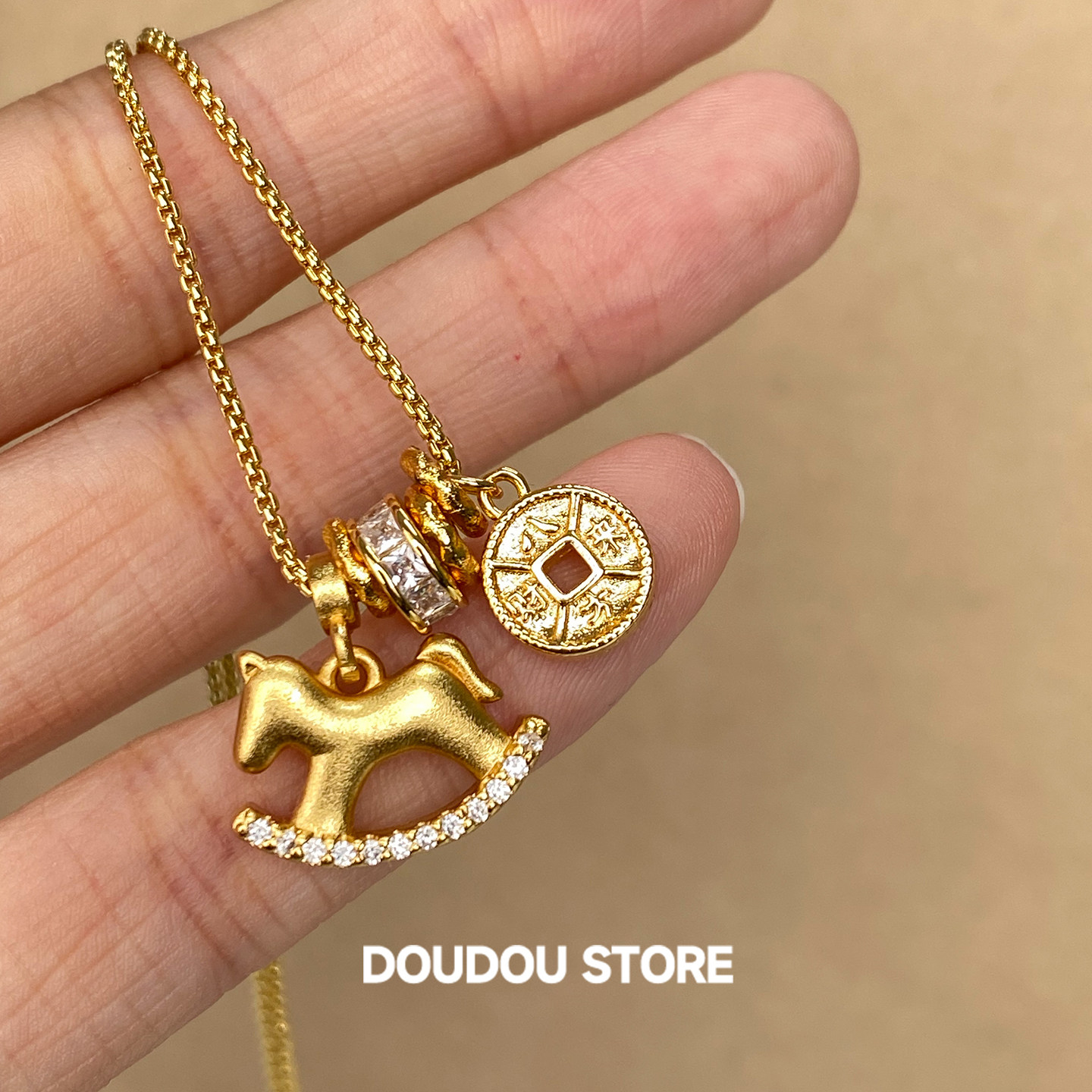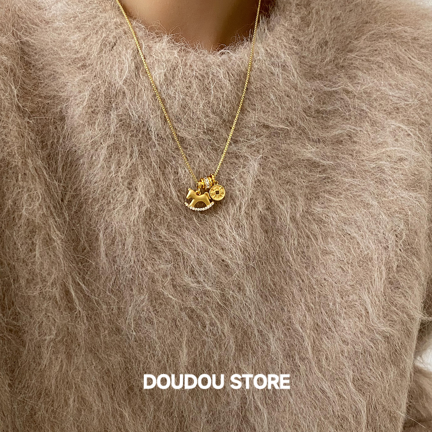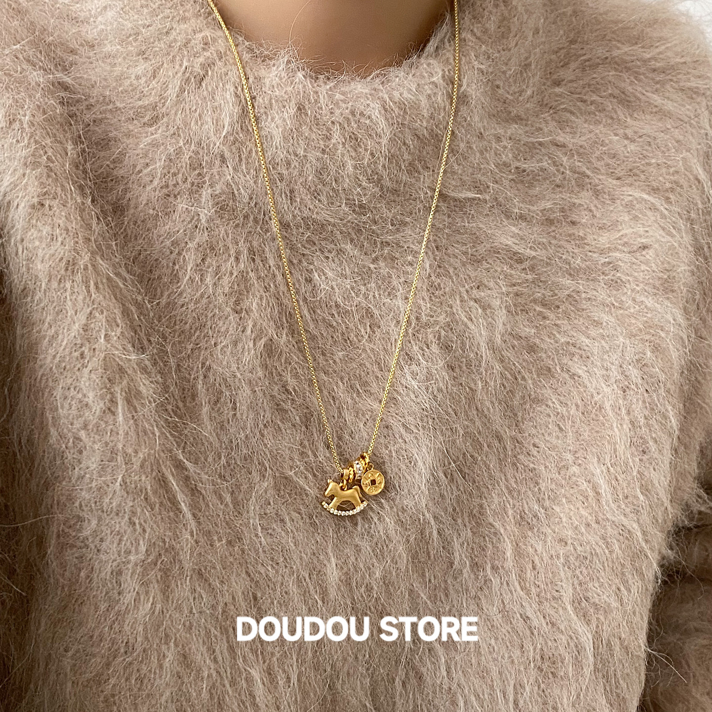DOUDOUSTORE保色长款80cm马上有钱沙金钱币毛衣链项链女新年礼物