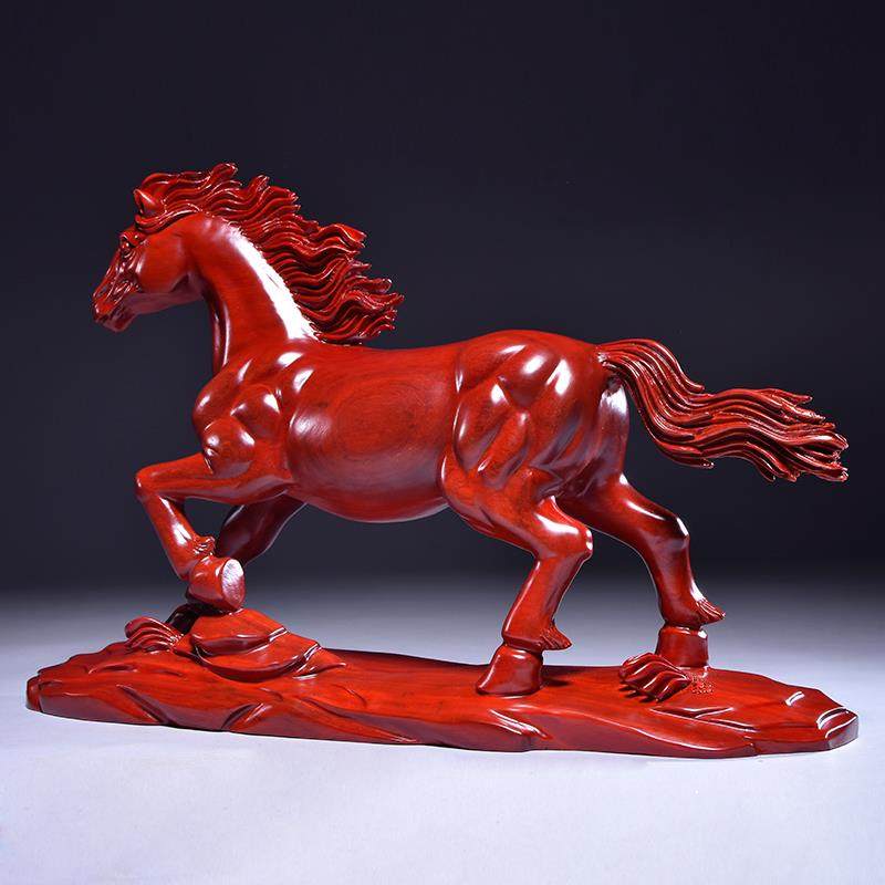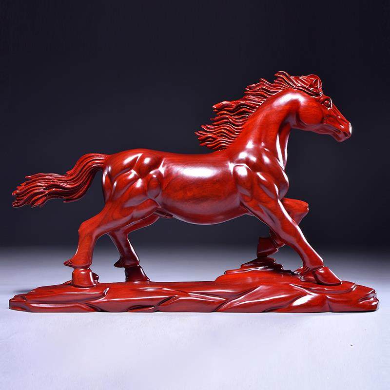 实木雕刻十二生肖马摆件红色木马到成功吉祥物家居装饰木质工艺品