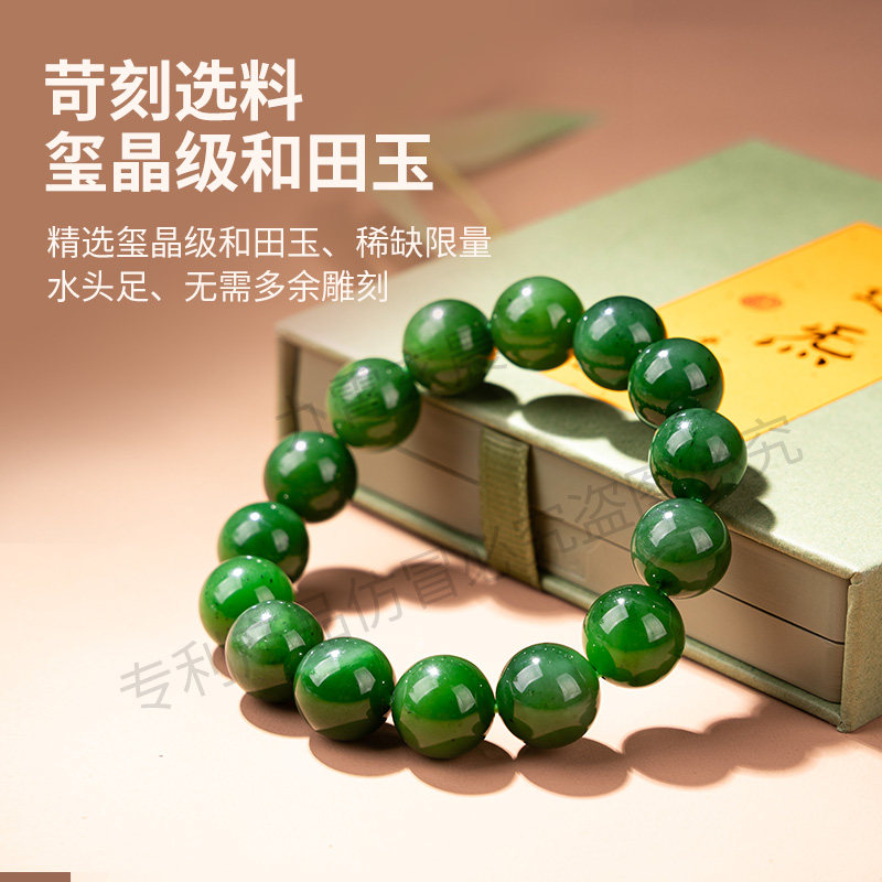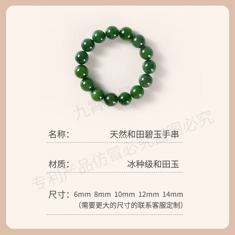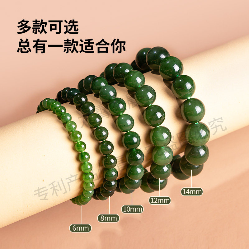 天然和田碧玉手串菠菜绿老矿油润俄料猫眼碧玉几乎无黑点正品保真