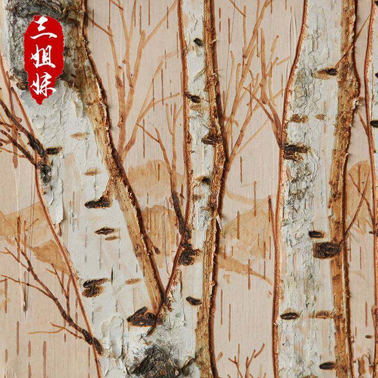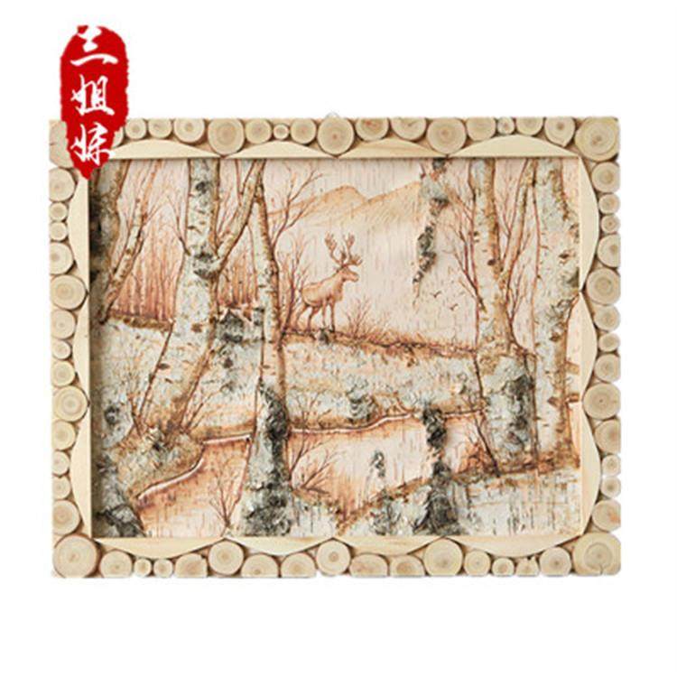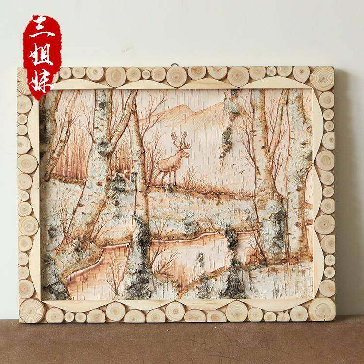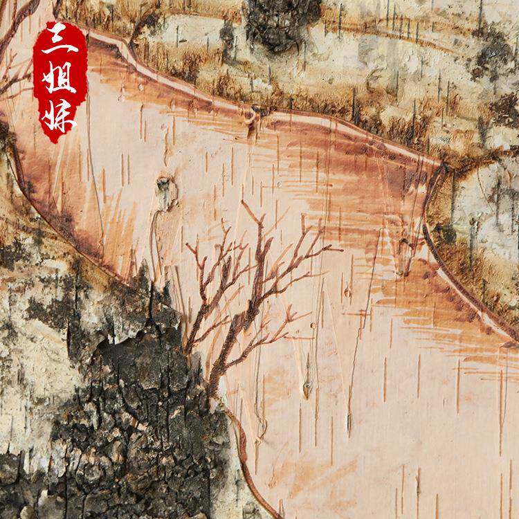 刻画桦木树皮画家居场合饰自然风格白桦d树大装皮iy树皮画-0手工