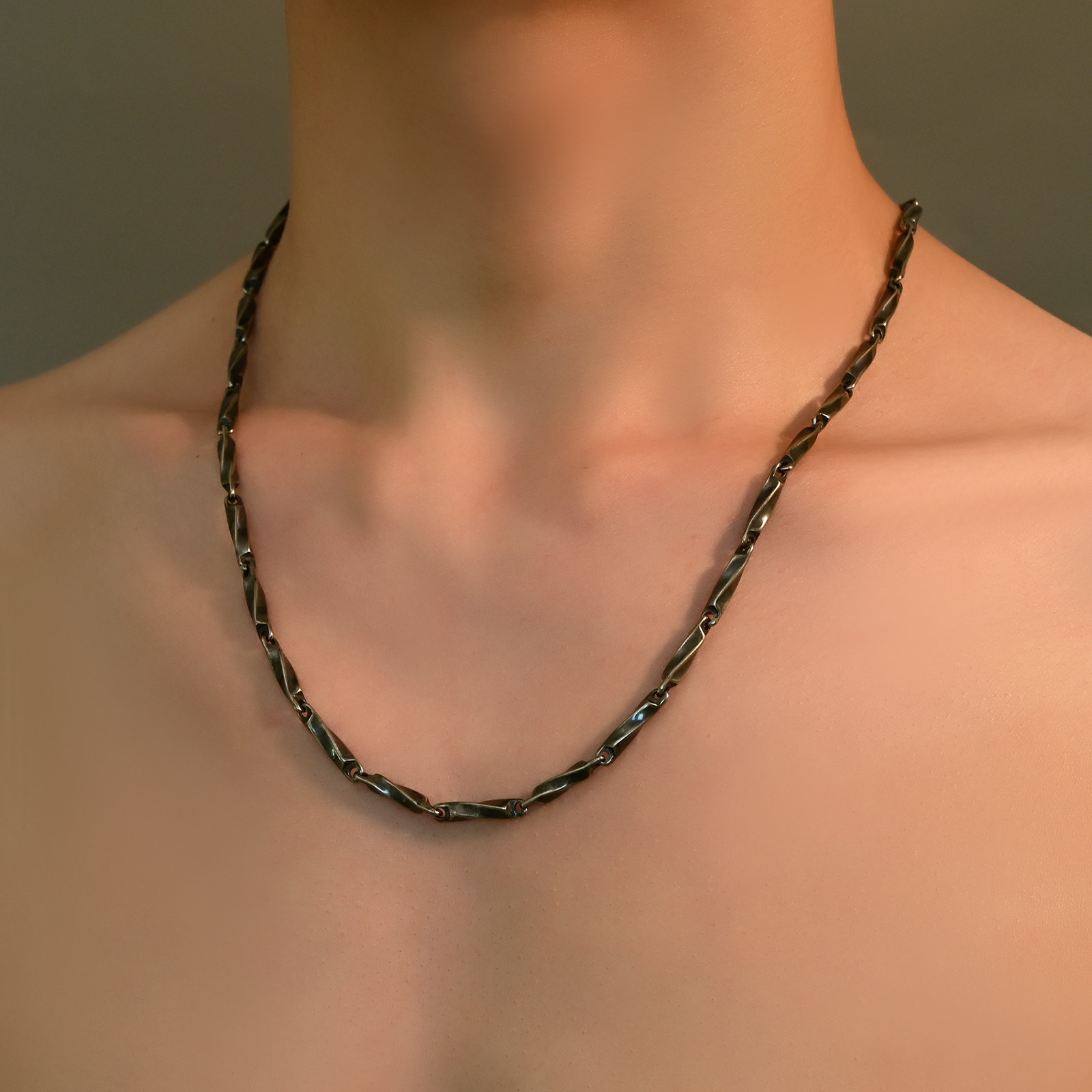 洗澡可戴!不掉色复古色莫比乌斯项链男高级感颈链小众设计锁骨链