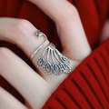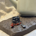 复古925银南红蝴蝶戒指花丝镂空做旧新中式女掐丝小众可调节指环