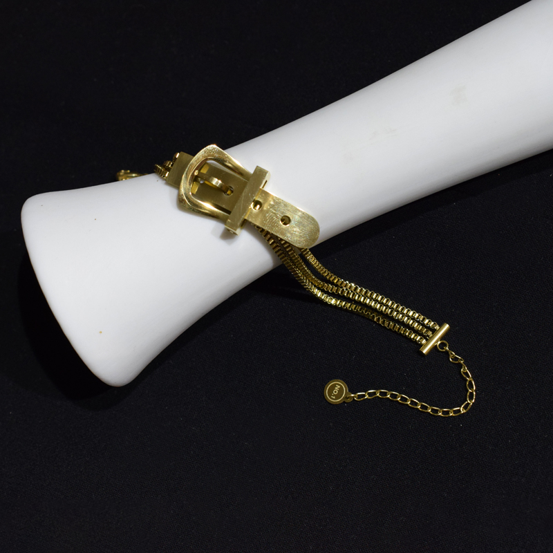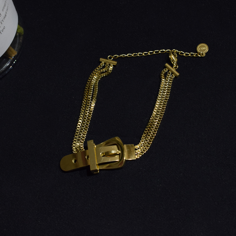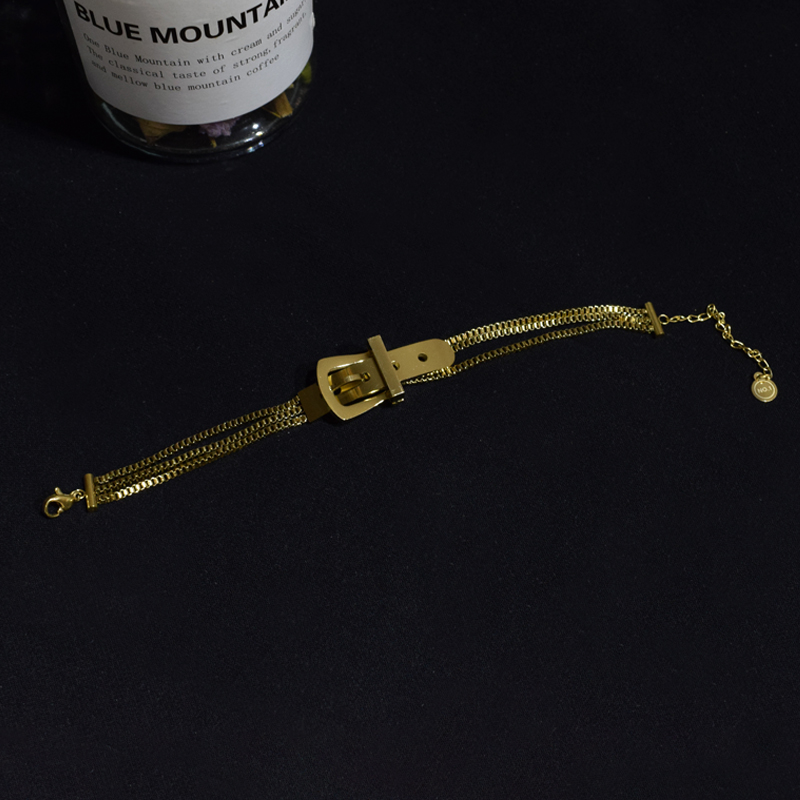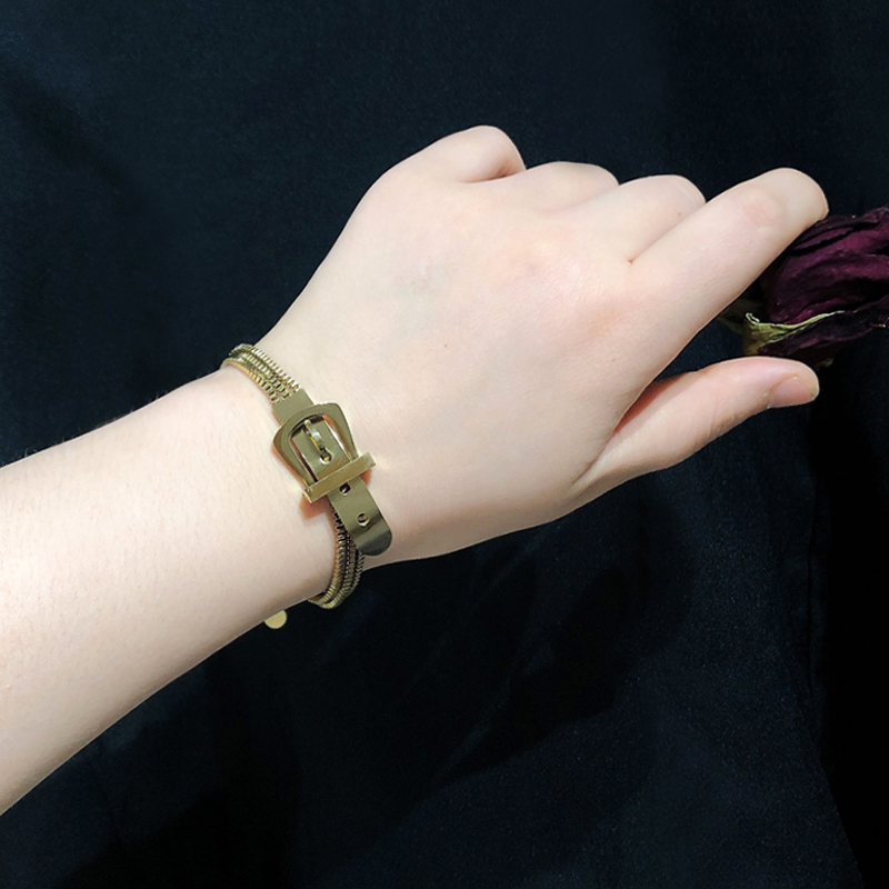 钛钢不褪色14K金色皮带扣手链ins个性时髦多层金属链夸张百搭手镯