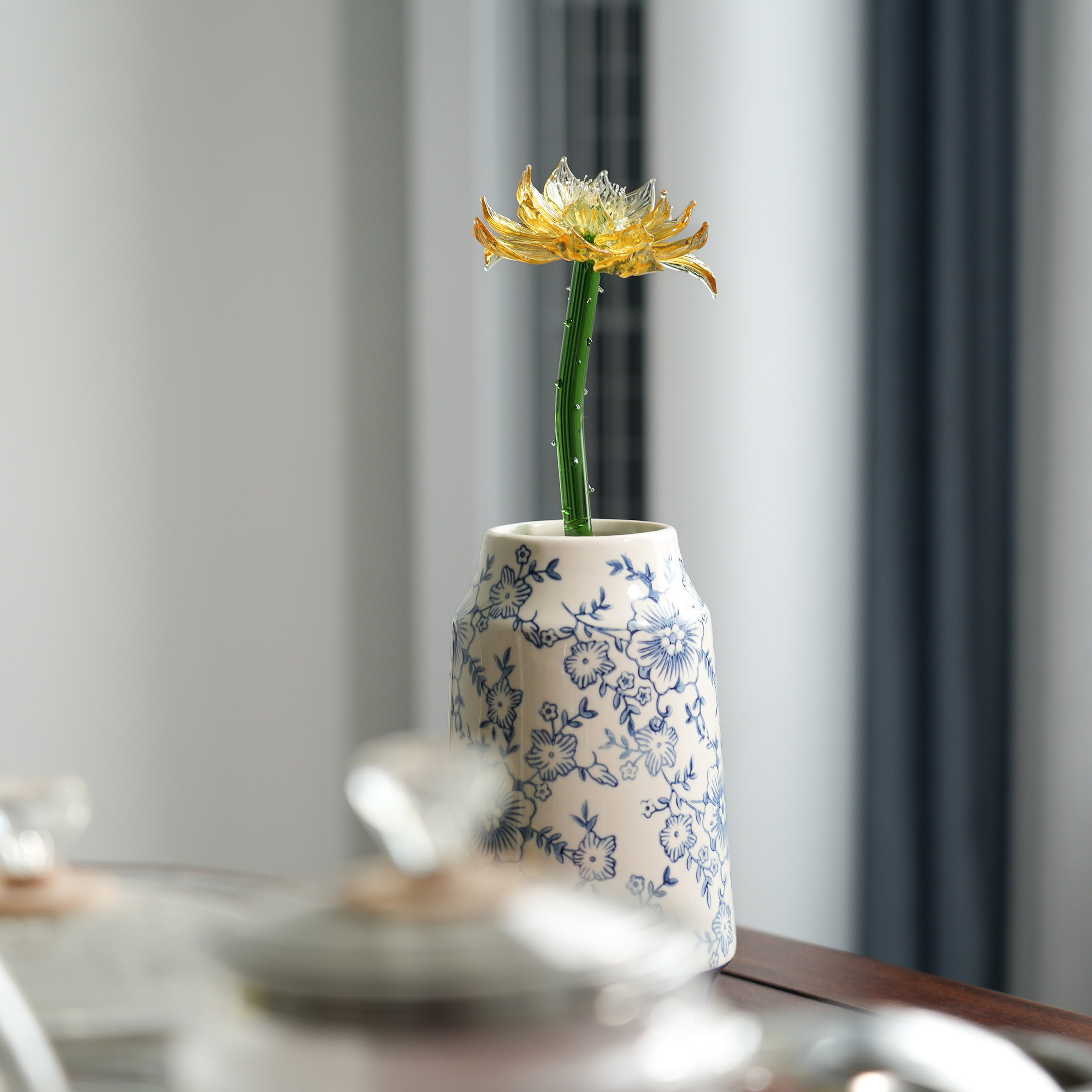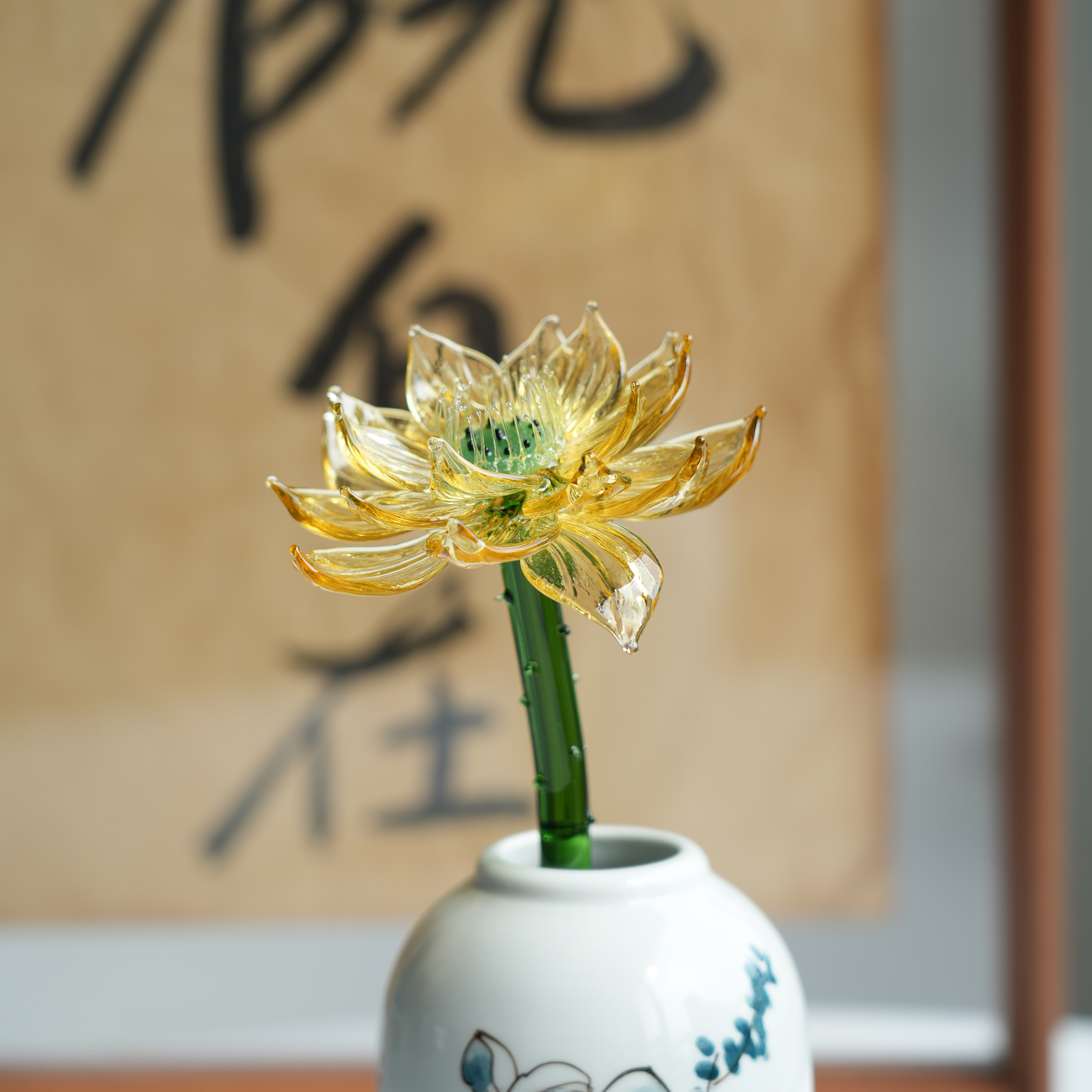 淄博琉璃仿真金色荷花中式装饰摆件禅意莲花治愈书房茶台插花摆设