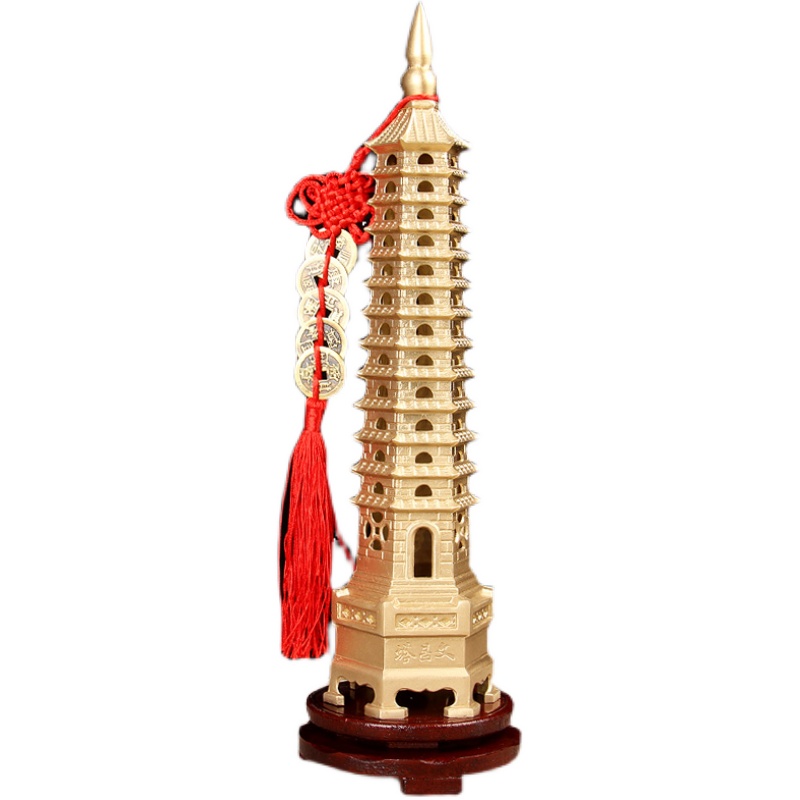 铜文昌塔摆件 配铜五帝钱挂件 配木底座 文昌塔工艺品