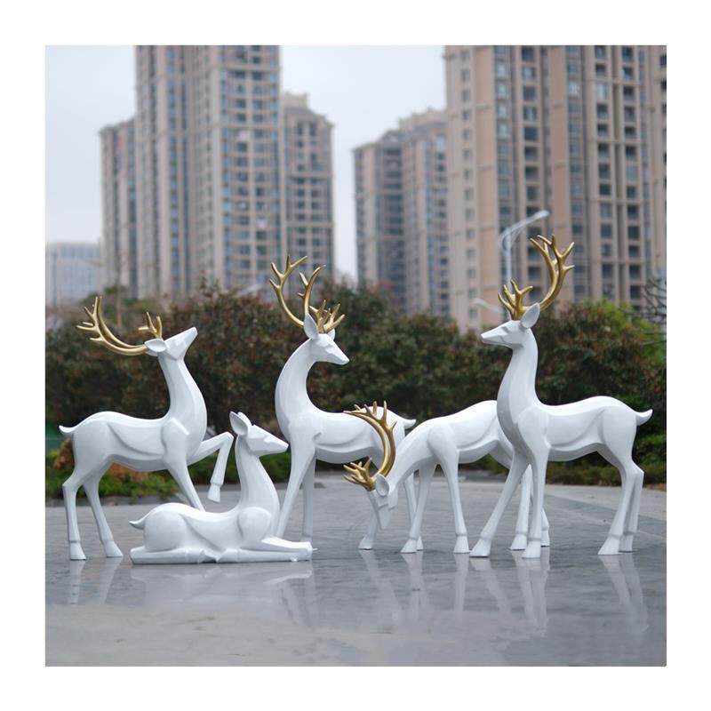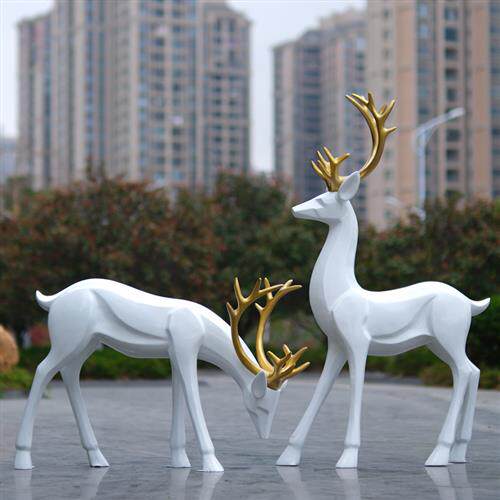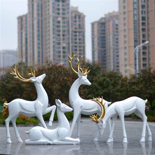 简约现代白色梅花鹿玻璃钢雕塑户外公园林景观房地产小区装饰摆件