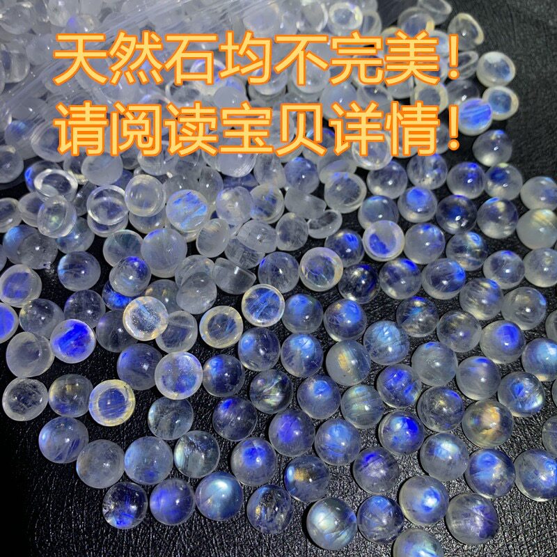棉裂体天然蓝月光石戒面裸石印度料白月光透体蓝光戒指吊坠手链