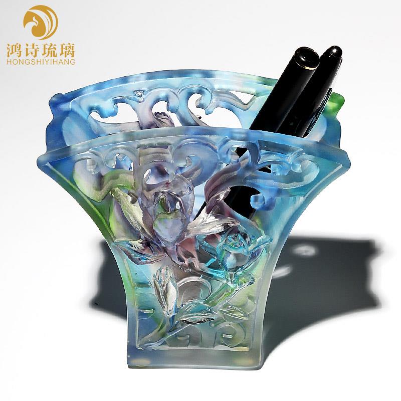 琉璃笔筒办公桌摆件创意女生办公室送人礼物高档女领导复古中国风