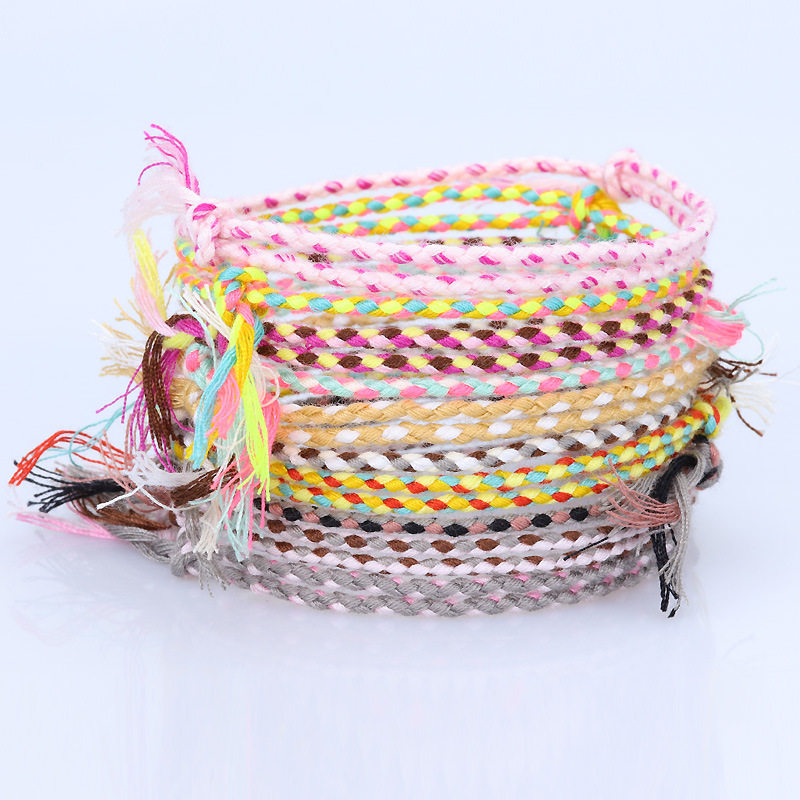 跨境新款简约平安扣四股彩色手绳文玩线手链手工编织红绳手链