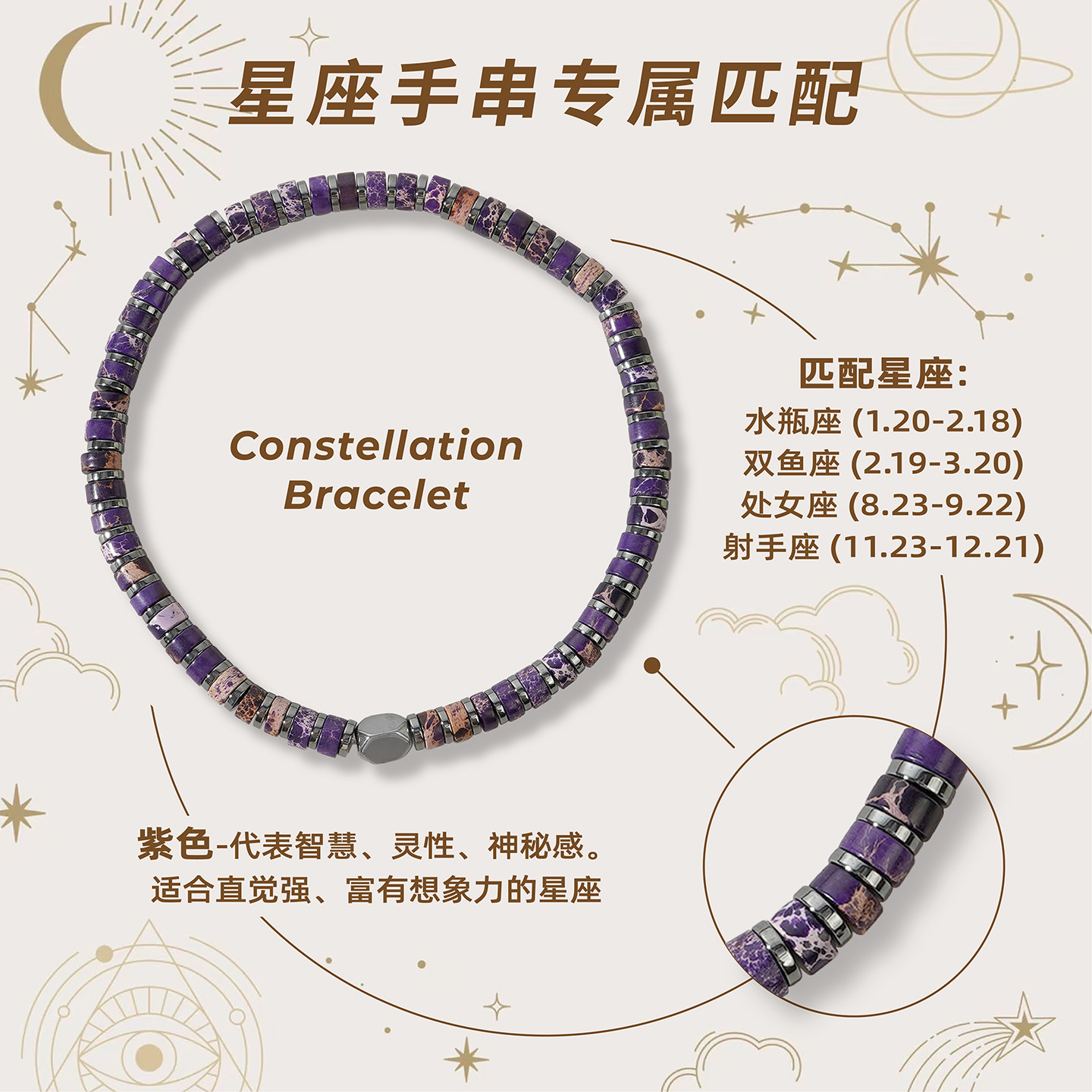 CCO紫色串珠潮流手链男士细珠手串星座手饰弹力绳潮牌礼物送男友