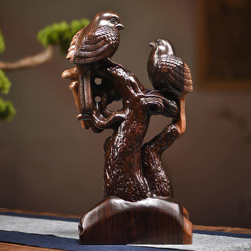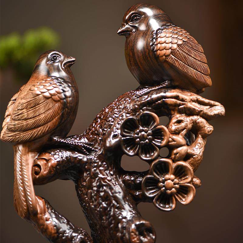 黑檀木双喜临门喜鹊摆件客厅装饰工艺品新婚礼物高档乔迁新居礼品