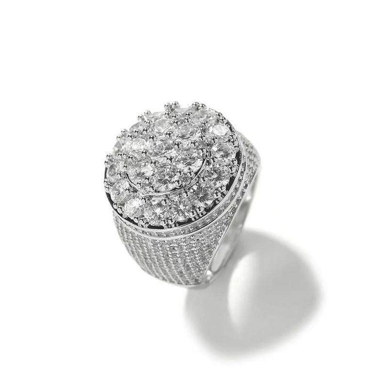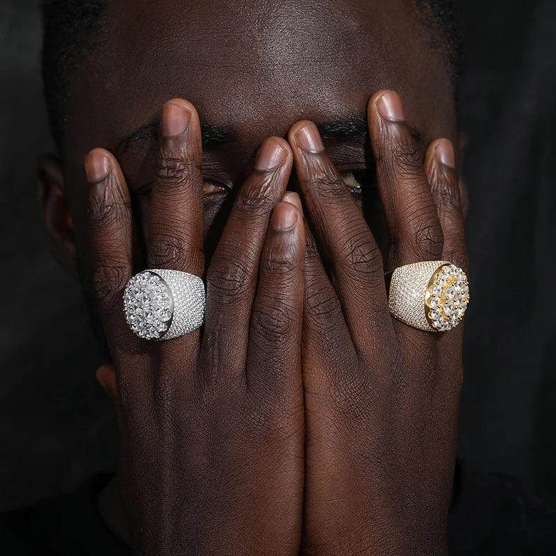HIISEES欧美男士嘻哈花朵钻戒指潮流复古真金电镀大指环闪耀饰品