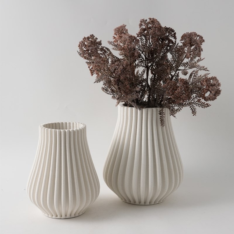 现代新中式侘寂风3D打印灰白麻点陶瓷艺术花瓶摆T件样板间客厅装