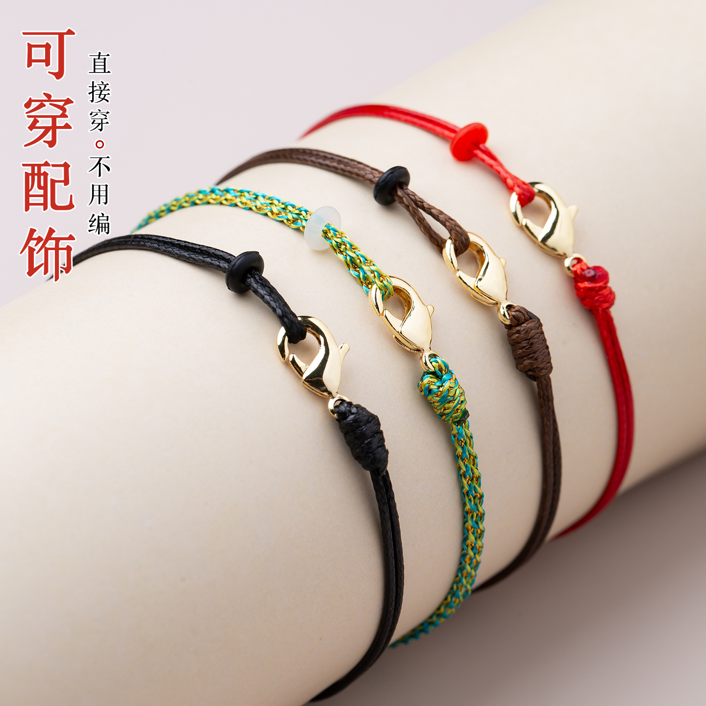 DIY蜡皮绳红色本命年手工编织手链成品穿金配饰女士情侣手绳简约