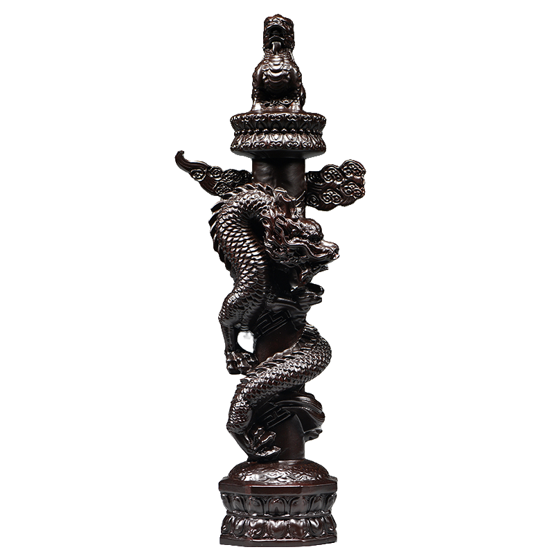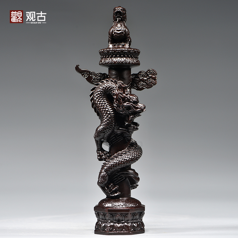 黑檀木雕华表柱摆件九龙柱盘龙柱流云龙中华柱家居补角装饰工艺品