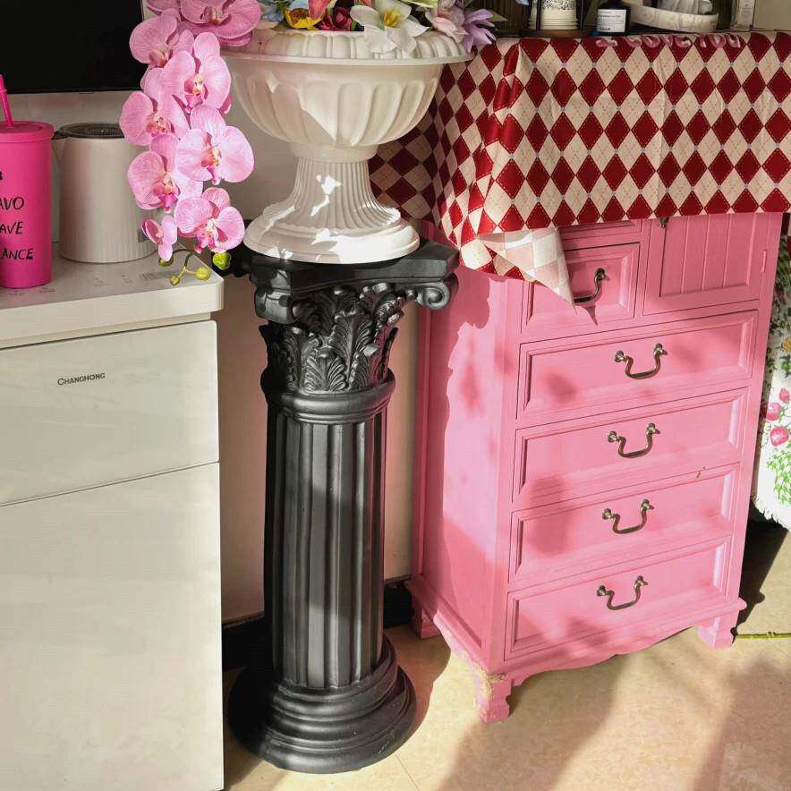 黄莎莎的花园纯黑色质感罗马柱边几室内家居装饰摆件工艺品