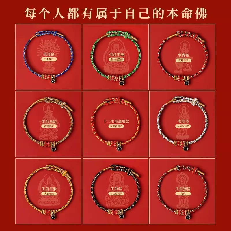 2026马年手绳本命年红手绳八大守护神纳米微雕楞严咒投影红绳