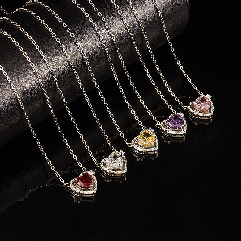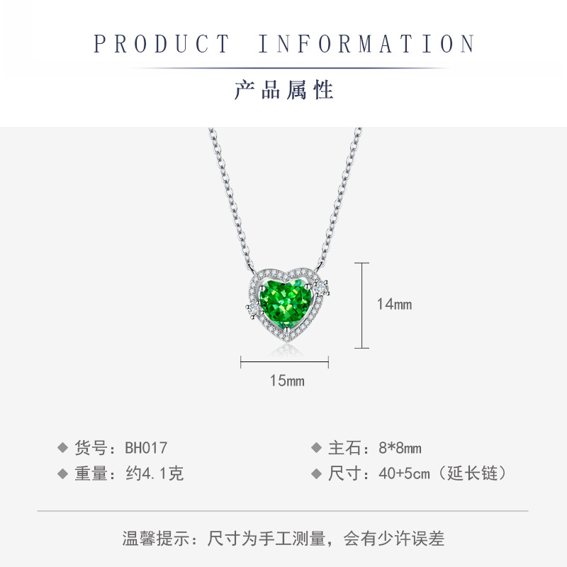 夏季新款小众设计爱心海蓝宝高碳钻冰花切项链时尚绿色心形锁骨链