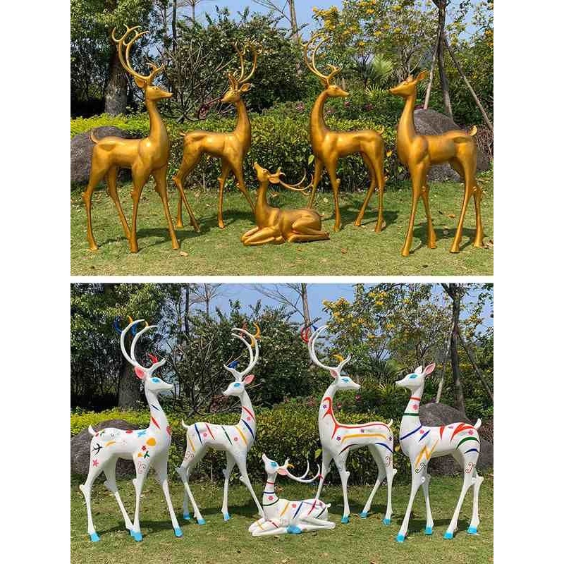 大型户外玻璃钢仿铜鹿雕塑摆件园林梅花鹿白麋鹿小鹿草坪仿真装饰