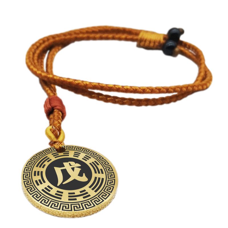 天干戊土吊坠男款女款缺木补木圆形钛钢项链挂坠八卦平安挂件吊牌