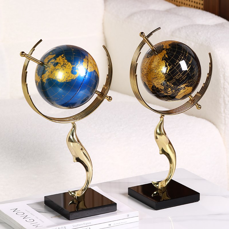 高级感地球仪摆件轻奢高档客厅桌面电视柜办公室玻璃艺术装饰礼物